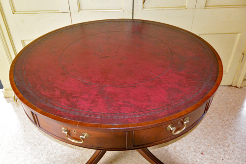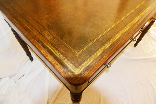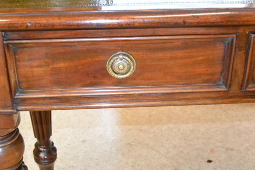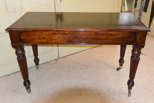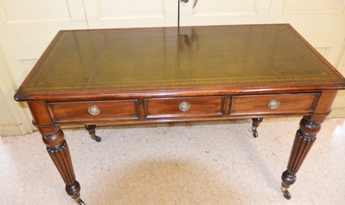 English Mid 19th Century Mahogany Partners Desk Continental Hard Pine Trestle Table Circa 1800 English Victorian Mahogany Writing Table English Edwards and Roberts Signed Sofa Table English Regency Kidney Shaped Writing Table, Lyre Ends French Napoleon III Writing Table Desk English Regency Mahogany Secretaire Bookcase English William IV Mahogany Writing or Library Table English Gillow & Co. Writing Table 33 inches Long